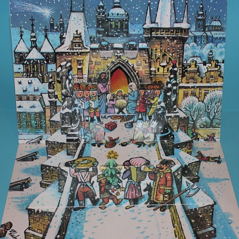 Přestože nemůžete shlédnout výstavu rozkládacích knih a betlémů Vojtěcha Kubašty a těšit se tím, že jedním pohybem ruky ožívají, můžete jeho výtvarné postupy vyzkoušet doma. Přikládáme jednoduchý návod, jak si vytvořit vánoční stromek technikou pop-up.